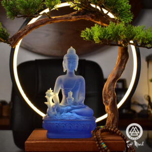 Thác khói trầm hương dược sư lưu ly quang vương được làm bởi chất đá lưu ly một trong những chất gốm quý nhất của Trung Quốc,được chế tác bằng phương pháp thủ công truyền thống cùng tạo hình gương mặt đầy uy nghiêm và phúc hậu