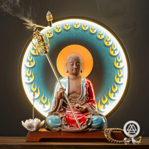 Thác khói trầm hương như lai đả tọa được làm bởi chất gốm tử sa một trong những chất gốm quý nhất của Trung Quốc,được chế tác bằng phương pháp thủ công truyền thống. Tạo hình gương mặt đầy uy nghiêm và phúc hậu