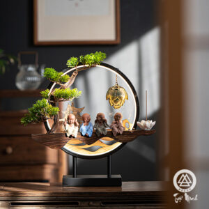 Sản phẩm bao gồm: Đế sắt cây giả, lư treo, tượng người trang trí, 1 hộp trầm tặng kèm